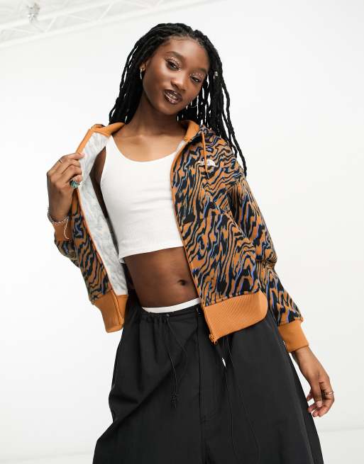 The North Face Essential cropped zip up hoodie in brown marble Very well made.