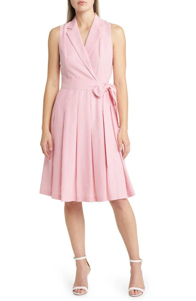 Anne Klein Women s Seersucker Wrap style Fit Flare Dress In Pink Very well made.