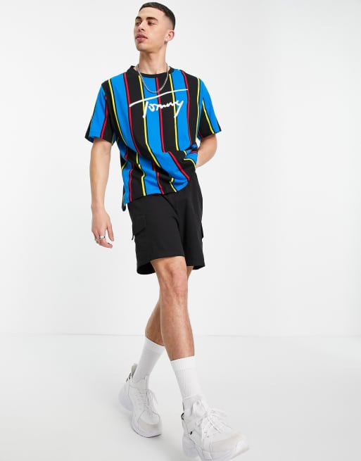 Tommy Hilfiger swim T shirt with chest script logo in blue stripe Very well made.
