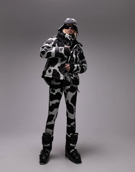 Topshop Sno cow print ski puffer jacket in multi Very well made.
