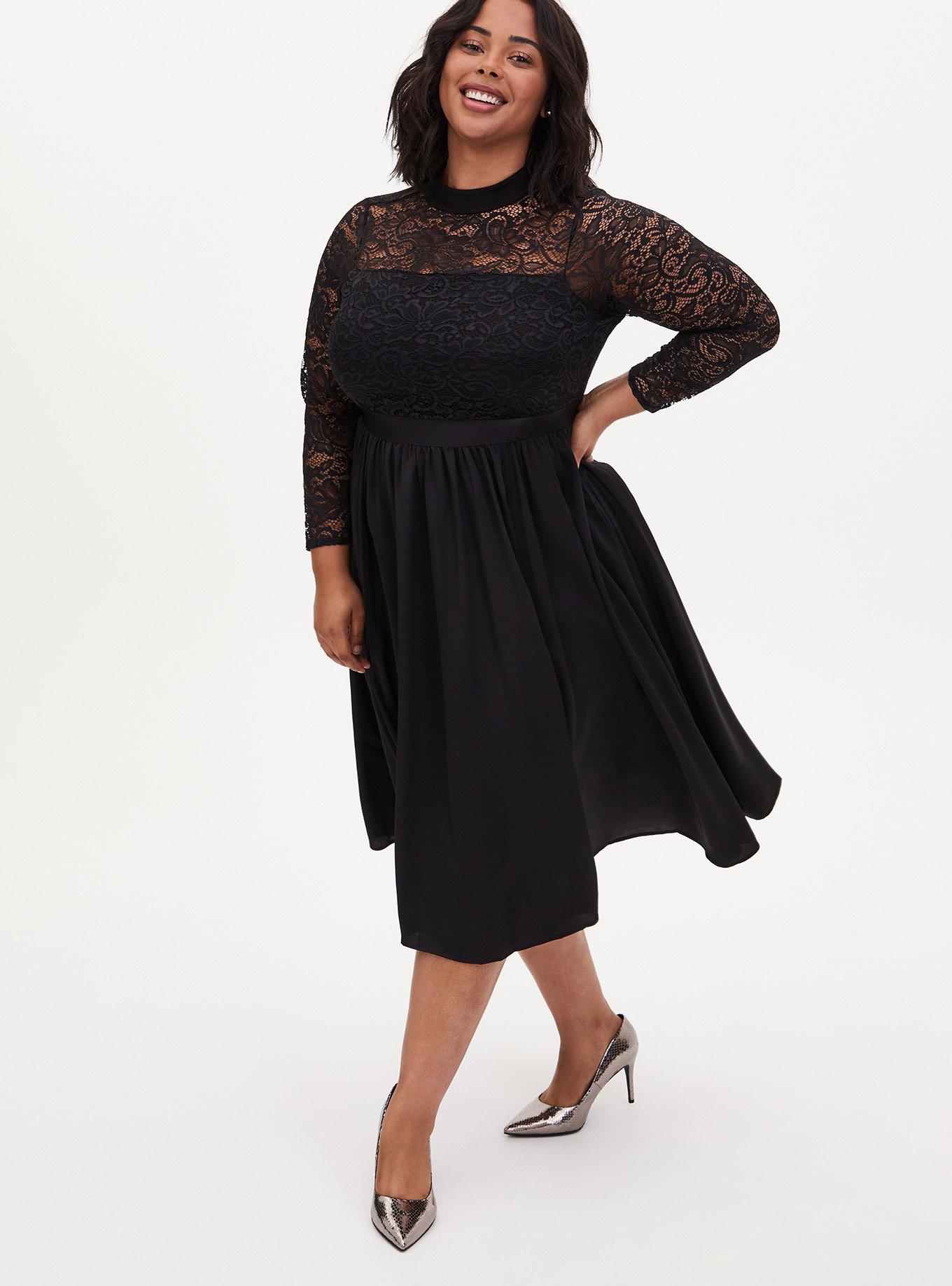 Plus Size Black Lace Mock Neck Skater Midi Dress Torrid Very well made.