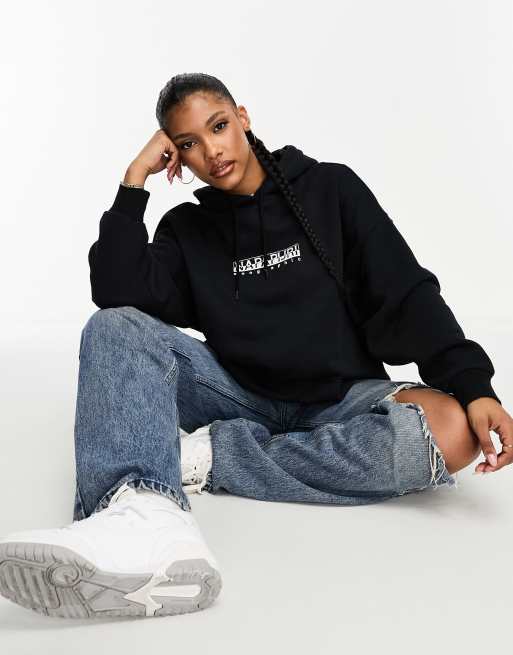 Napapijri Box Felpa con cappuccio oversize in pile nera con Very well made.