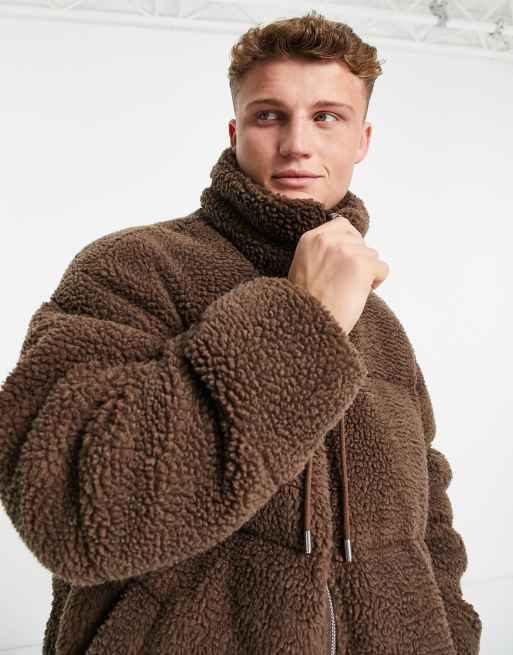 Barneys Originals oversized full zip borg puffer jacket in brown Very well made.