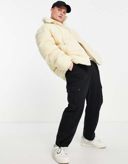 Barneys Originals oversized full zip borg puffer jacket in ecru Very well made.