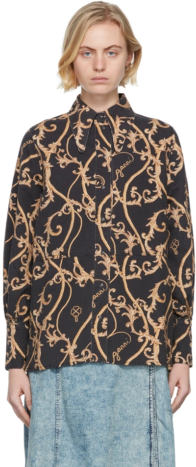 Baroque print Denim Shirt In Black Very well made.