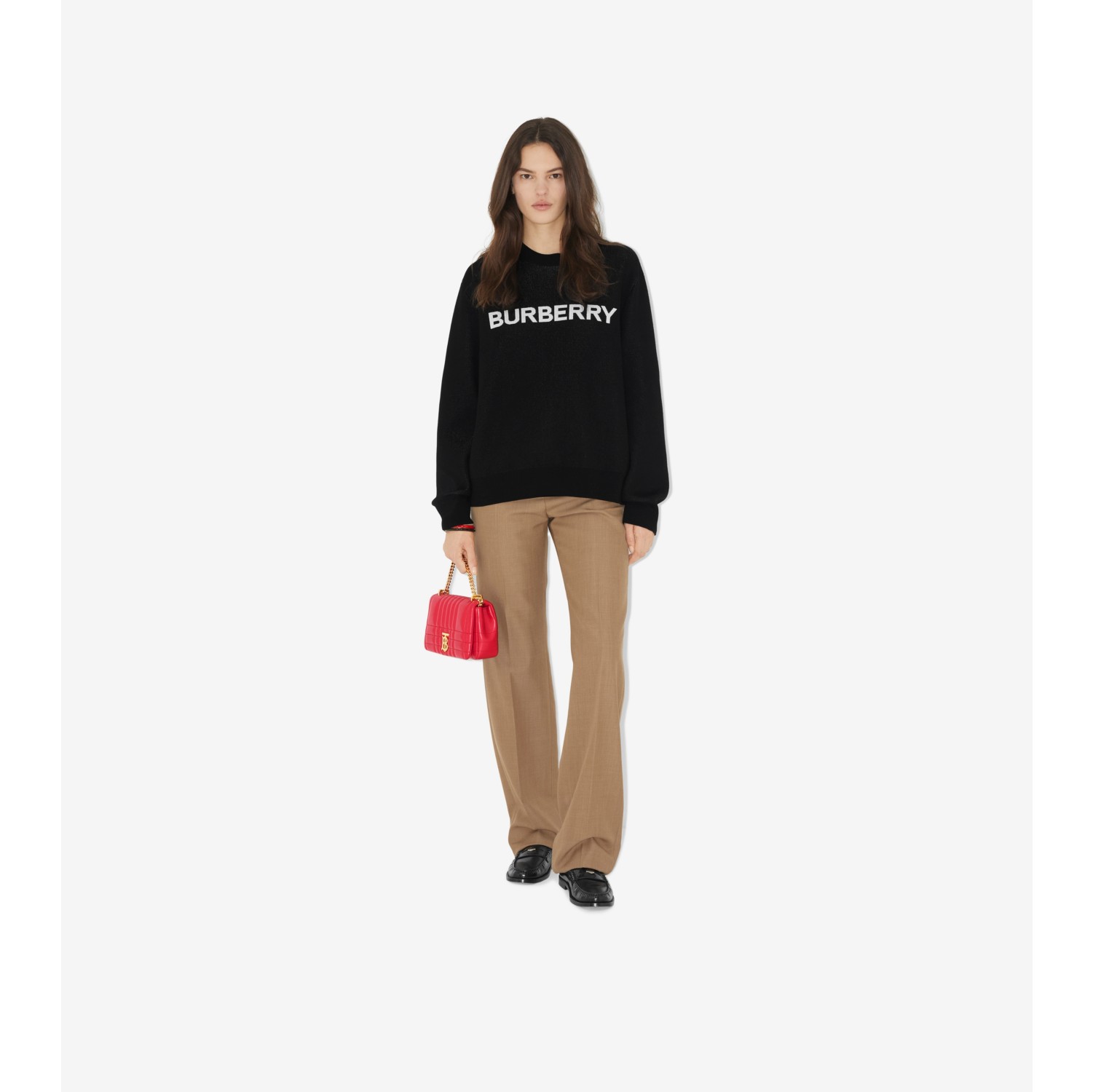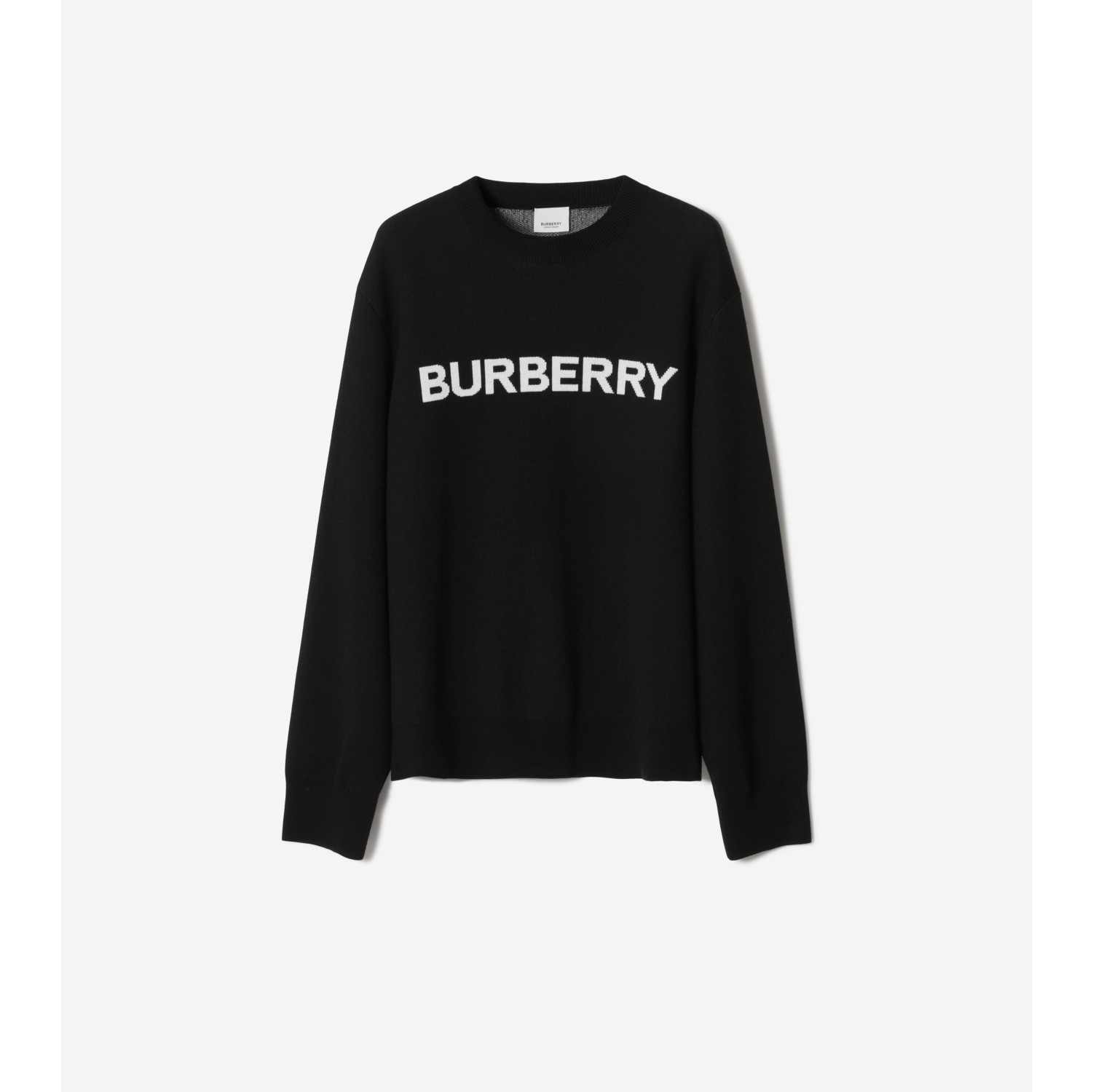 Logo Wool Cotton Jacquard Oversized Sweater in Black Women Burberry Official Very well made.