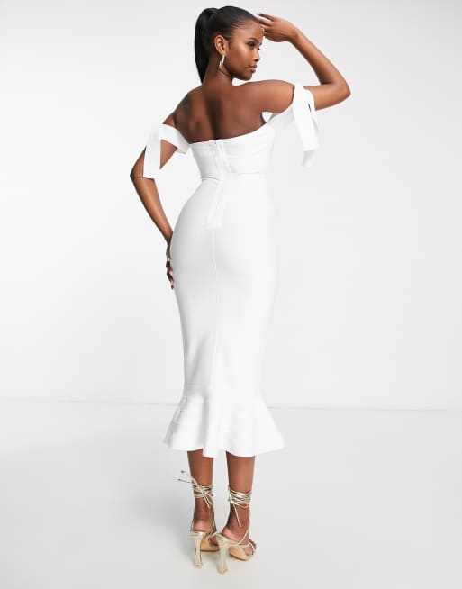 Rare London off shoulder bandage midi dress in white Very well made.