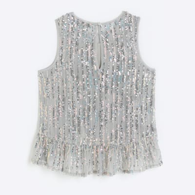 Girls white sequin sleeveless blouse Very well made.