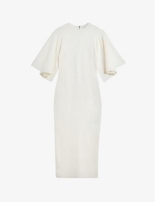 TED BAKER Lounia fluted sleeved bodycon stretch knit midi dress Very well made.