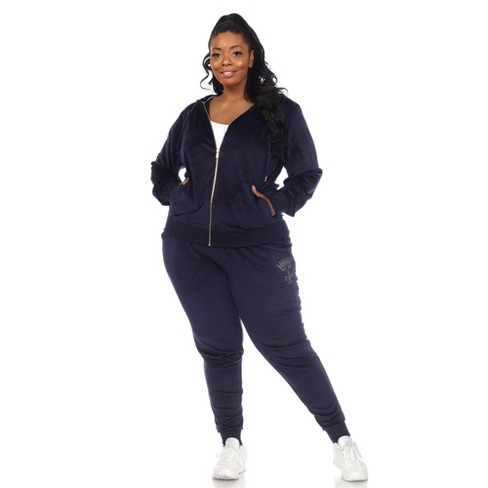 Women s Plus Size Rhinestone 2 Piece Velour Tracksuit Set Navy 3x Very well made.
