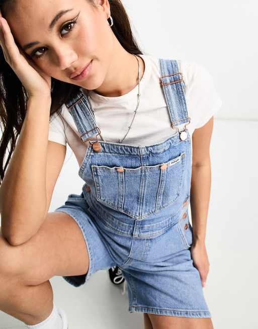 Wrangler denim short dungarees in mid wash blue Very well made.