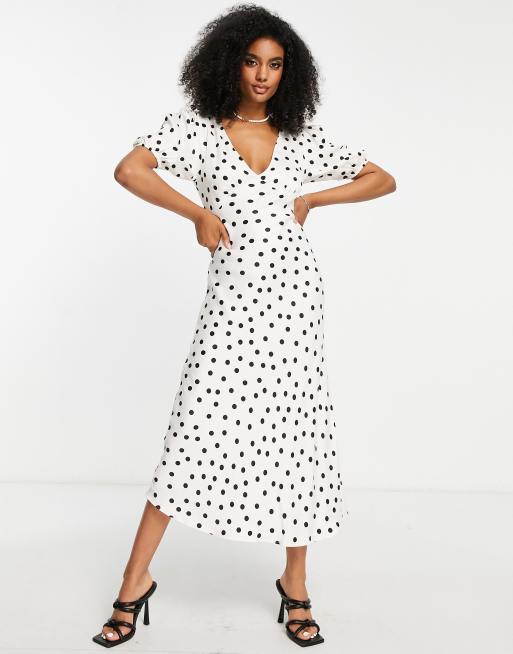 Mango Robe mi longue pois avec manches bouffantes et col V Very well made.