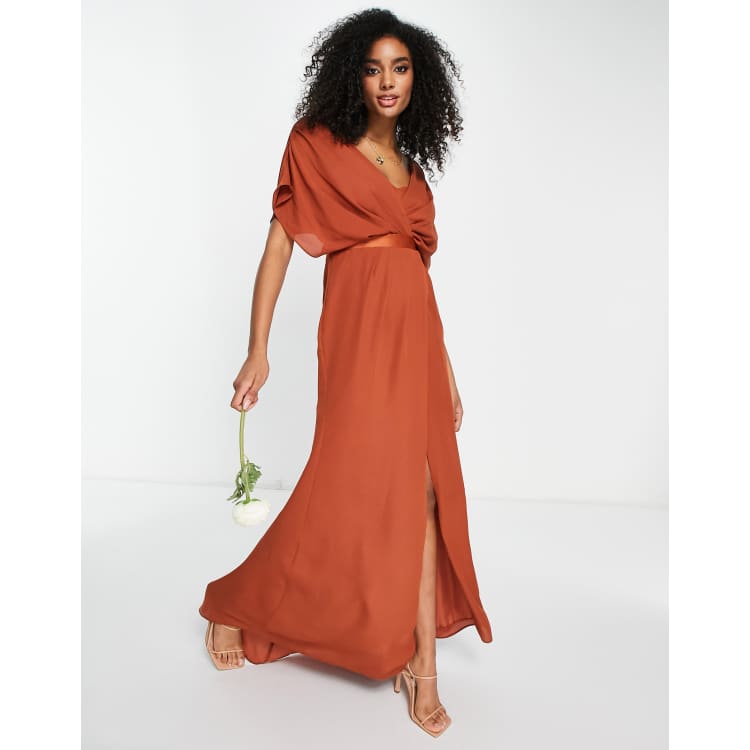 ASOS DESIGN Robe longue de demoiselle d honneur avec manches courtes devant style b nitier et dos boutonn Rouille Very well made.