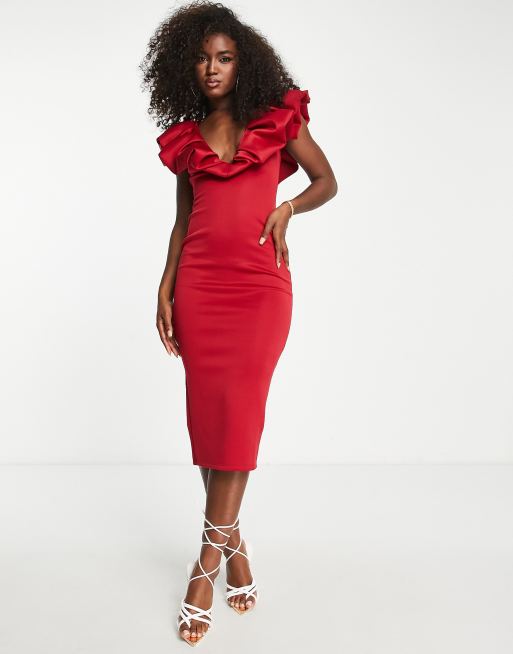 ASOS DESIGN Robe mi longue pliss e et boutonn e avec fronces la taille Rouge intense pois m tallis s Very well made.
