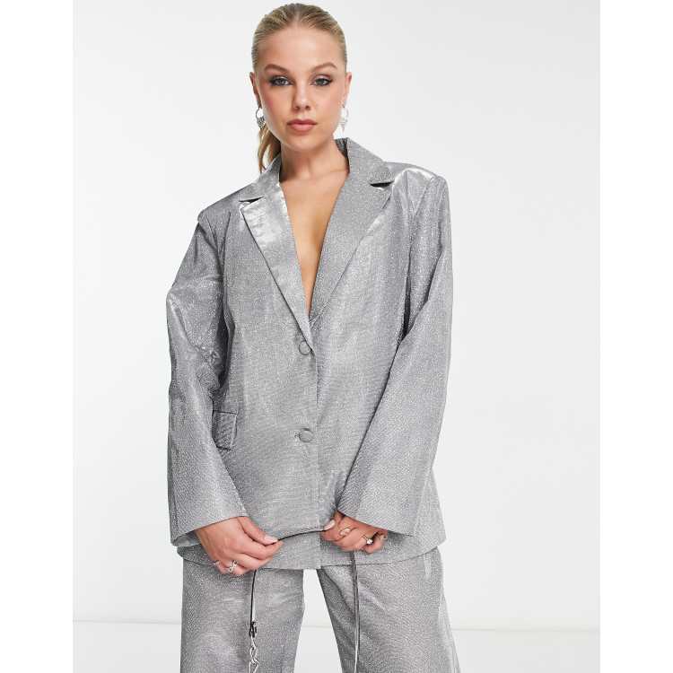 Pieces Premium exclusive oversized glitter blazer co ord in silver Very well made.