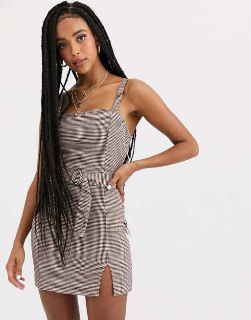 Pull Bear belted dress with split hem in brown check ASOS Very well made.