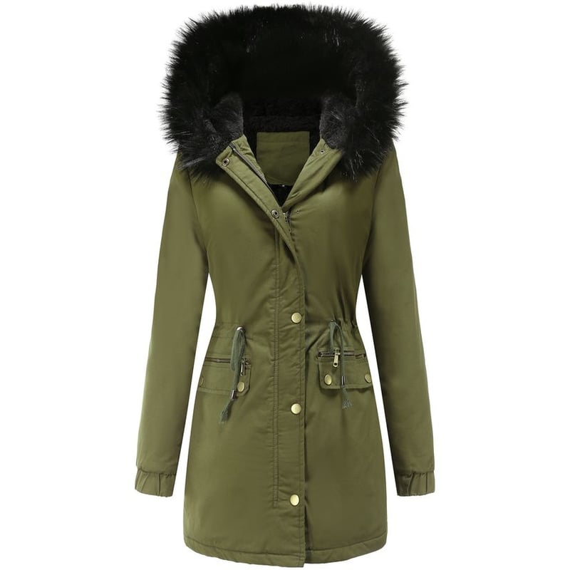 Abrigo con capucha de lana para mujer Verde Very well made.
