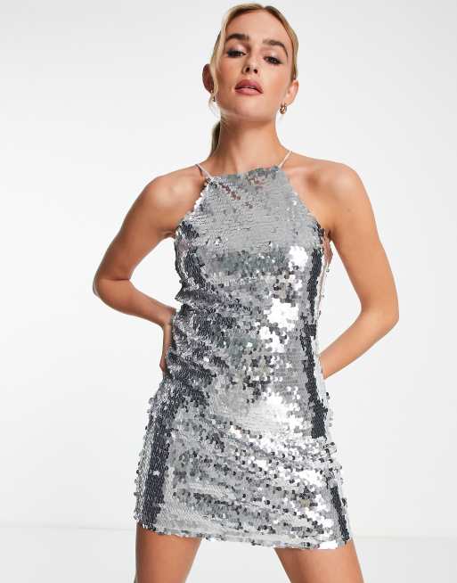 ASOS EDITION Robe mi longue sequins carr s Argent Very well made.