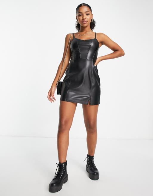 Stradivarius Robe courte style corset fines bretelles en imitation cuir Noir Very well made.
