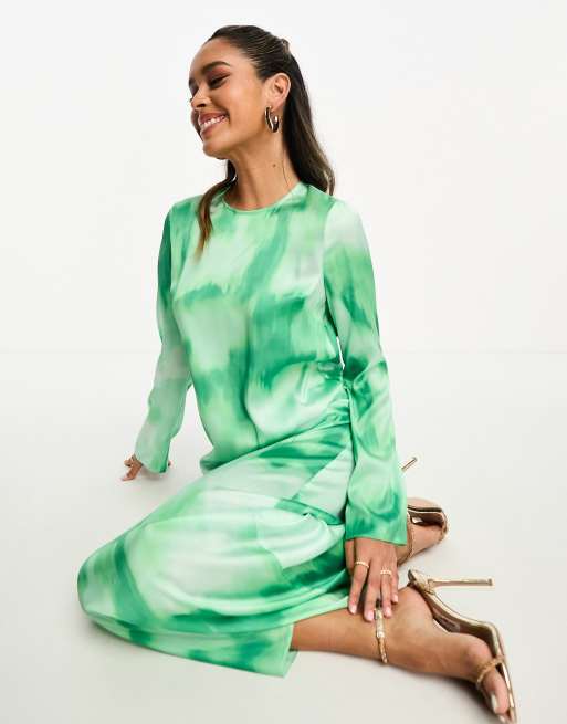 ASOS DESIGN Robe droite longue en satin imprim marbr Vert Very well made.