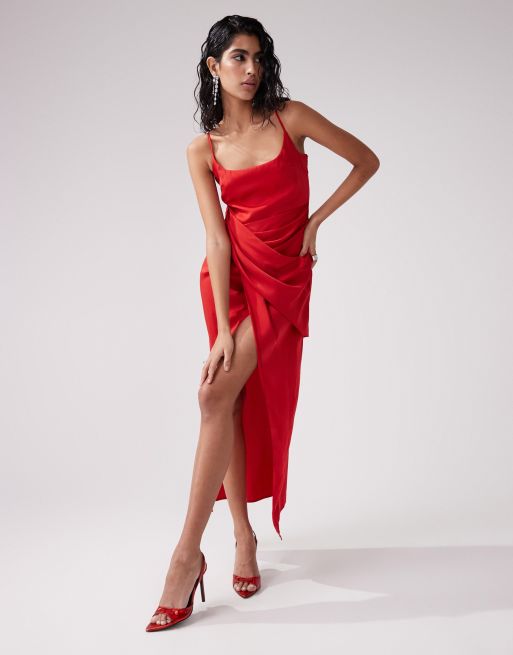 ASOS DESIGN Robe mi longue en satin avec jupe drap e Rouge Very well made.