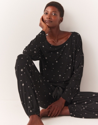 Jersey Star Printed Tie Hem Pajama Set Pajamas The White Very well made.