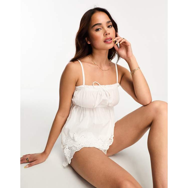 ASOS DESIGN eyelet cami short pajama set in white Very well made.