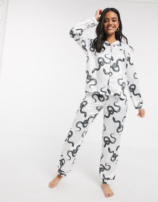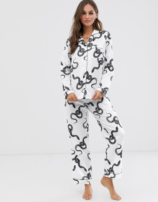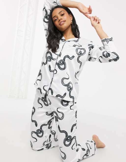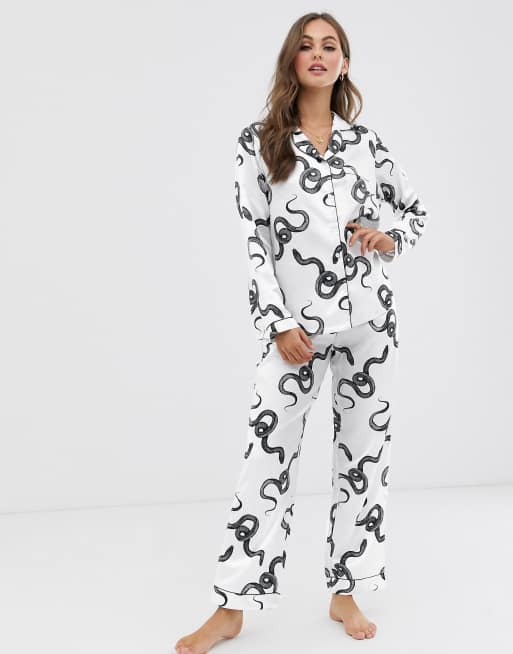 Loungeable Luxe snake print satin revere pyjama set in white Very well made.