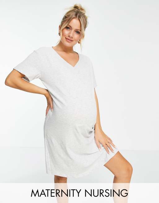 Lindex Lina cotton button front nursing night dress in gray heather GRAY Very well made.