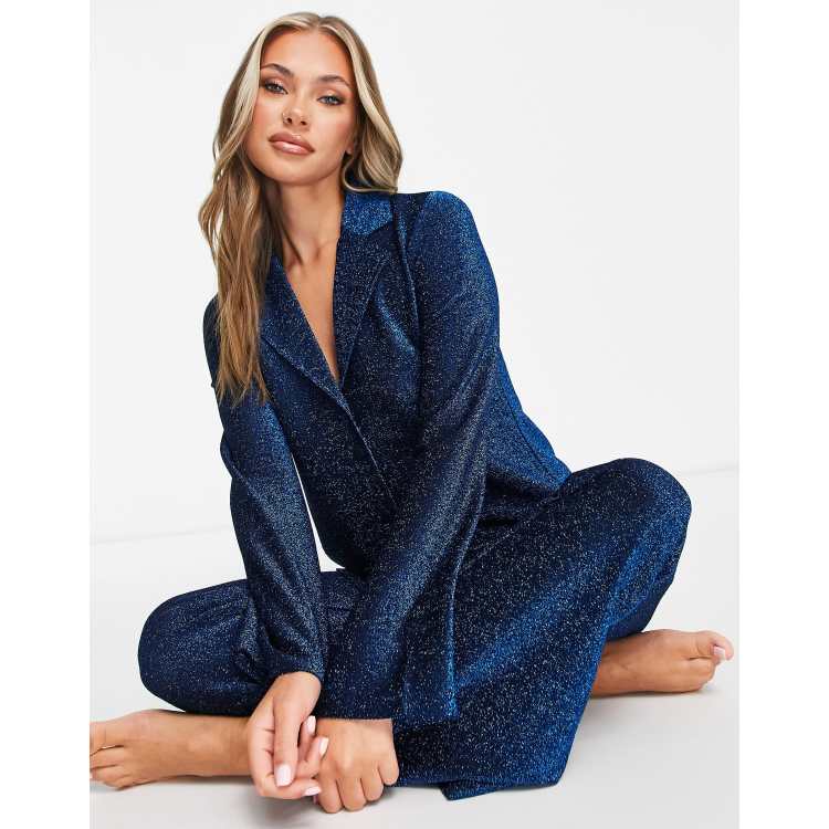 ASOS DESIGN glitter sweatshirt sweatpants pajama set in silver Very well made.