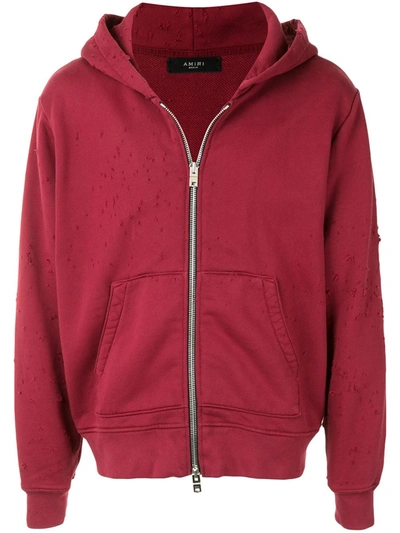 Amiri Distressed Zip front Hoodie In Red ModeSens Very well made.