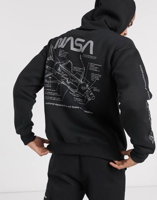 Pull Bear NASA hoodie with chest and back print in black Very well made.