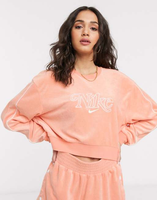 Nike Sportswear Women s Medium Peach Retro Femme Terry Cropped Crew Sweatshirt Very well made.