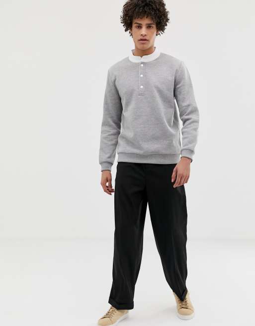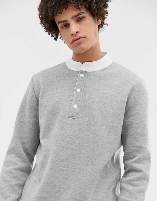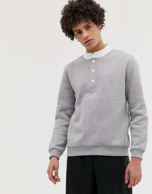 ASOS DESIGN sweatshirt with grandad collar in gray marl Very well made.