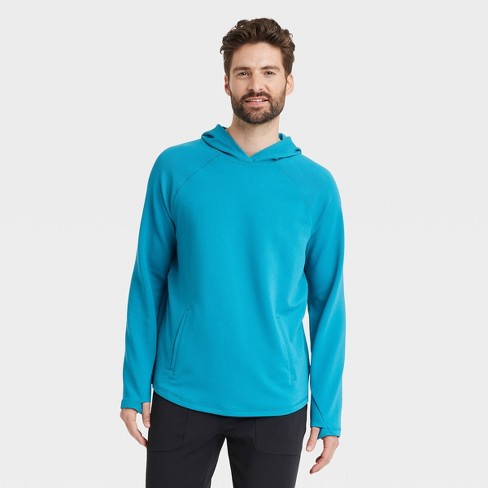 Men s Heavy Waffle Hooded Sweatshirt All In Motion Teal Blue M Very well made.