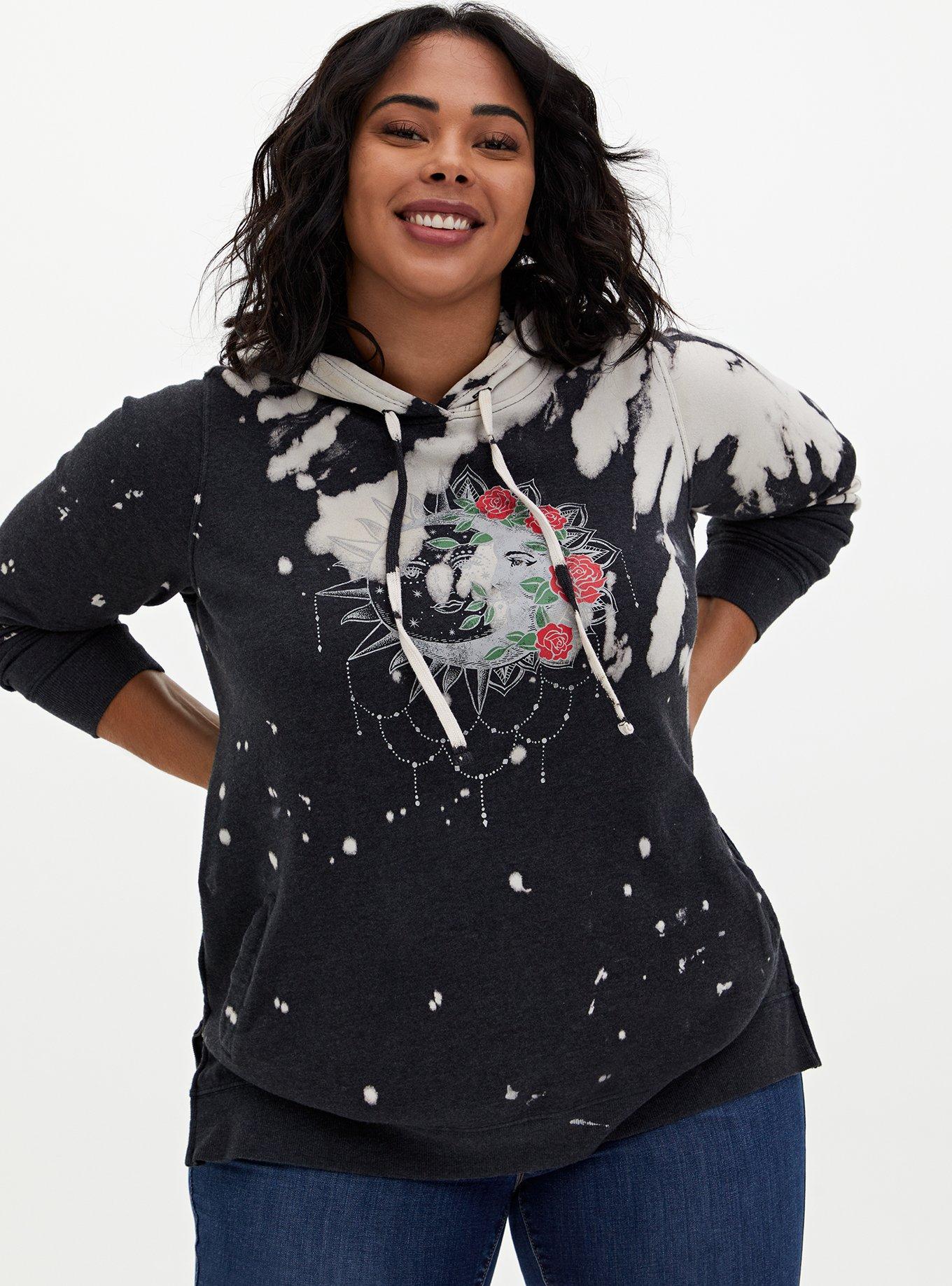 Plus Size Black Bleach Dye Fleece Moon Side Zip Tunic Hoodie Very well made.