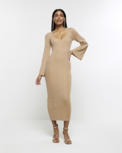 River Island cozy mini knit sweater dress in khaki Very well made.