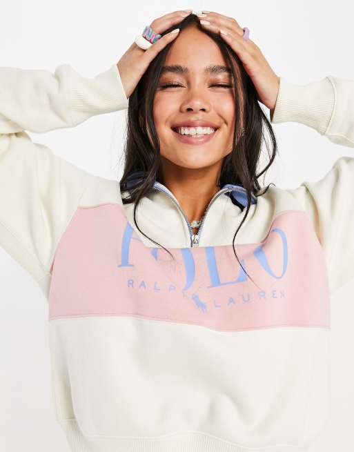 Polo Ralph Lauren x Asos exclusive collab half zip logo sweater in pink Very well made.
