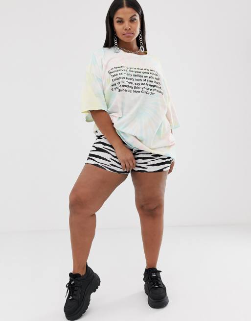 New Girl Order Curve oversized t shirt in tie dye with manifesto print Very well made.