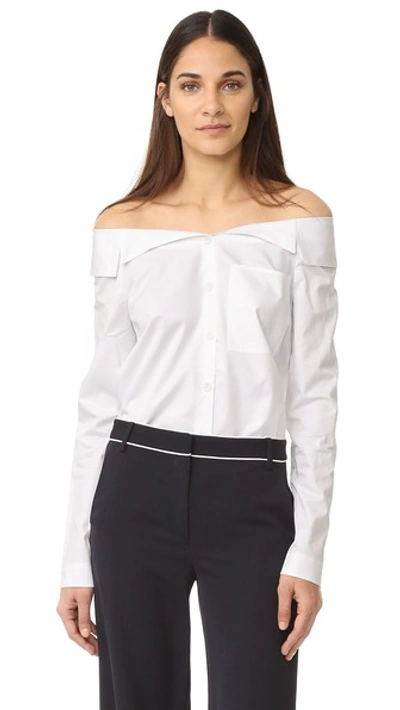 Notch Collar Off The Shoulder Poplin Shirt In White Very well made.
