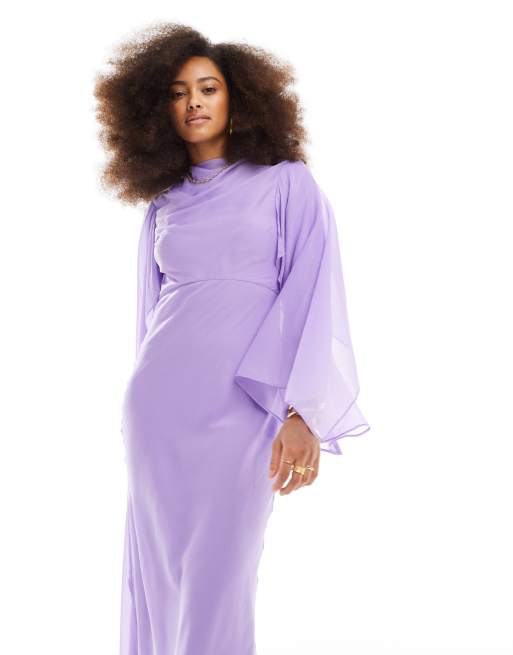 ASOS DESIGN cape sleeve bias maxi dress in chiffon with cape overlay detail in lilac ASOS Very well made.