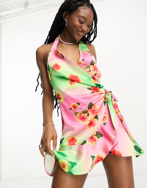 COLLUSION floral print wrap halter mini dress in multi Very well made.
