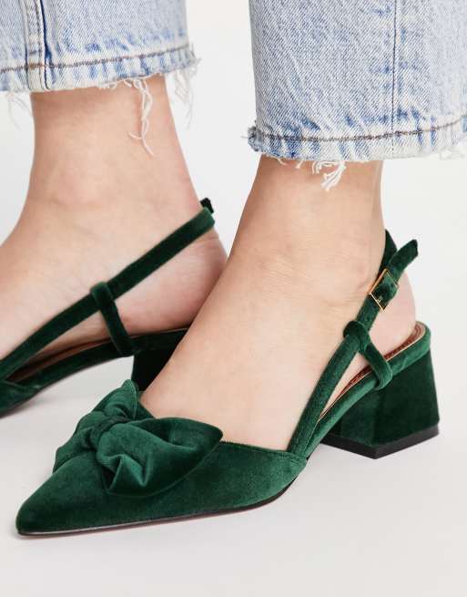 ASOS DESIGN Suzy Chaussures a talons mi haut avec bride arriere et n ud Vert Very well made.