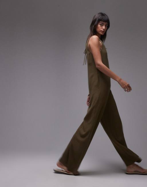 ASOS DESIGN Minimalistischer Jumpsuit aus Cupro in Khaki mit Ringverzierung am Rucken ASOS Very well made.
