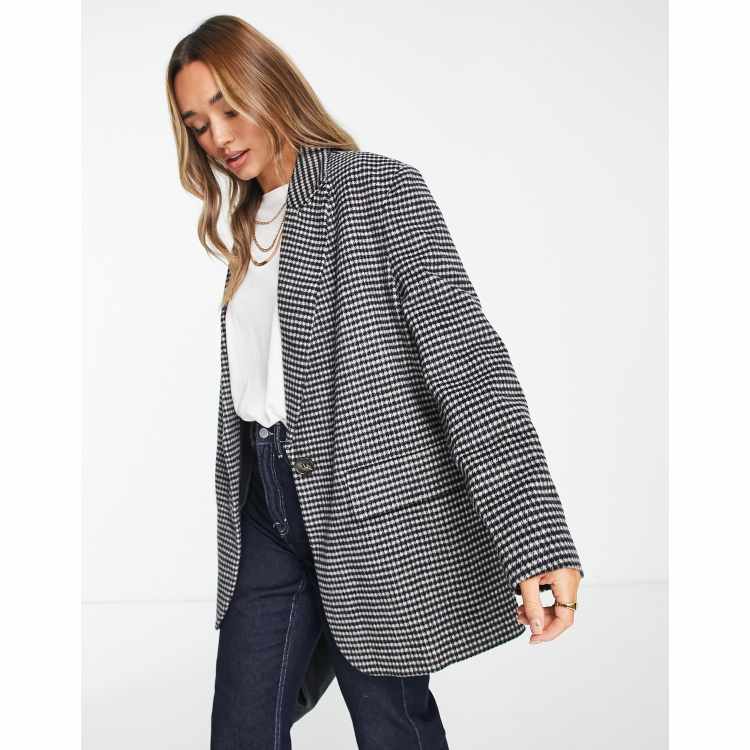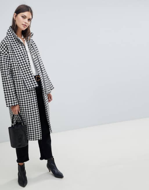 Monki wool blend coat with collar in houndstooth Very well made.
