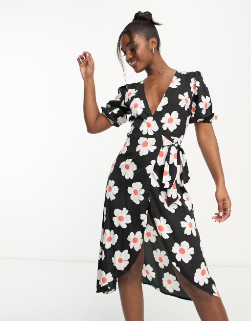 Influence wrap front midi dress in floral print Very well made.