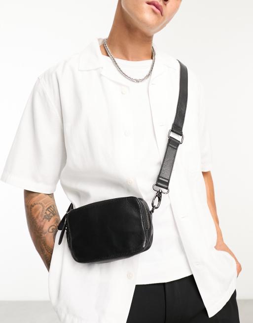 ASOS DESIGN leather cross body bag with zip pocket in black Very well made.