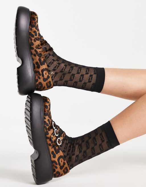 ASOS DESIGN Missy chunky mary jane shoes with diamonte buckles in leopard Very well made.