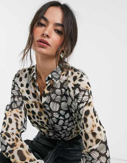 ASOS DESIGN long sleeve soft shirt in mixed animal scarf print Very well made.