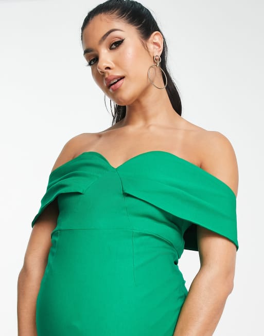 Vesper Maternity bardot midi dress in green Very well made.